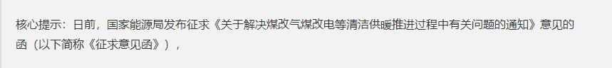 日前,國(guó)家能源局發(fā)布征求《關(guān)于解決“煤改氣”“煤改電”等清潔供暖推進(jìn)過(guò)程中有關(guān)問(wèn)題的通知》意見(jiàn)的函(以下簡(jiǎn)稱“《征求意見(jiàn)函》”),引發(fā)業(yè)內(nèi)熱議。